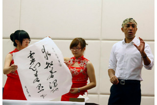 Calligraphy demonstration in Beijing at UIBE. | |
